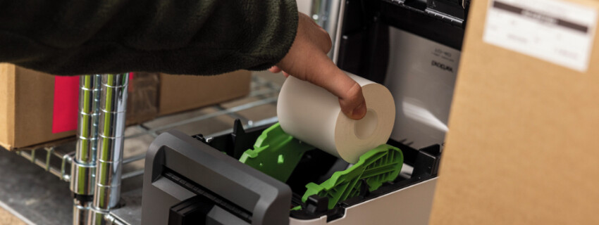 Os rolos linerless, sendo rolos contínuos, também oferecem uma grande flexibilidade, permitindo a criação de etiquetas de diferentes tamanhos com um único consumível. Esta caraterística também reduz os custos de transporte e armazenamento, uma vez que um rolo sem liner pode pesar até 40% menos do que um rolo convencional. Além disso, a gestão do stock de consumíveis é simplificada, uma vez que não é necessário ter vários rolos para diferentes aplicações, facilitando a compra, a reposição e o armazenamento.