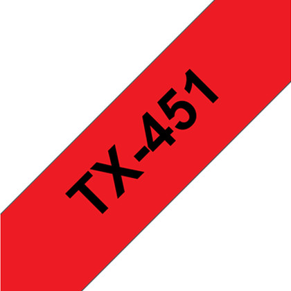 Fita laminada. Texto preto sobre fundo vermelho. Largura: 24 mm. Comprimento: 15 m - Brother TX-451