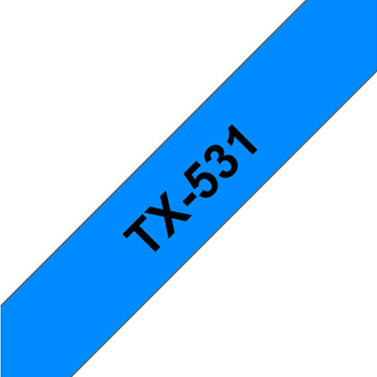 Fita laminada. Texto preto sobre fundo azul. Largura: 12 mm. Comprimento: 15 m - Brother TX-531