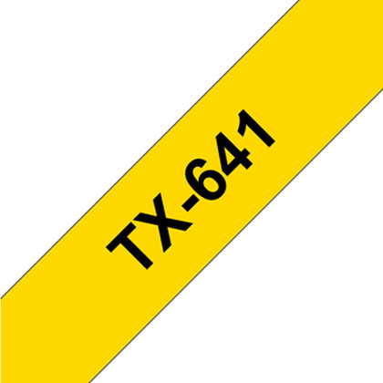 Fita laminada. Texto preto sobre fundo amarelo. Largura: 18 mm. Comprimento: 15 m - Brother TX-641