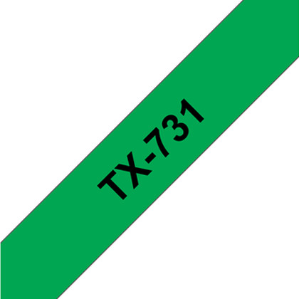 Fita laminada. Texto preto sobre fundo verde. Largura: 12 mm. Comprimento: 15 m - Brother TX-731
