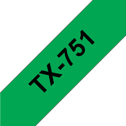 Fita laminada. Texto preto sobre fundo verde. Largura: 24 mm. Comprimento: 15 m - Brother TX-751