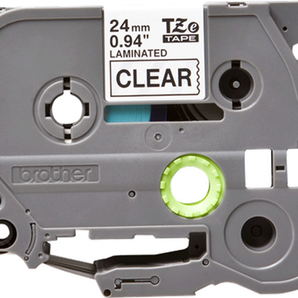 Fita laminada. Texto preto sobre fundo transparente. Largura: 24 mm. Comprimento: 8 m - Brother TZe-151