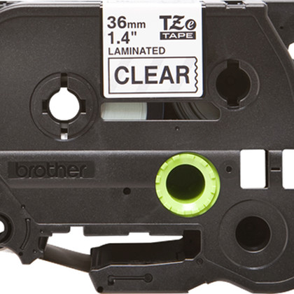 Fita laminada. Texto preto sobre fundo transparente. Largura: 36 mm. Comprimento: 8 m - Brother TZe-161