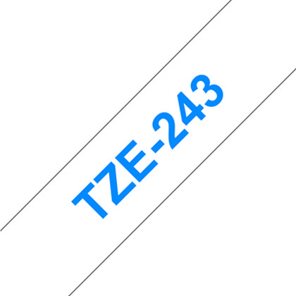 Fita laminada. Texto azul sobre fundo branco. Largura: 18 mm. Comprimento: 8 m - Brother TZe-243
