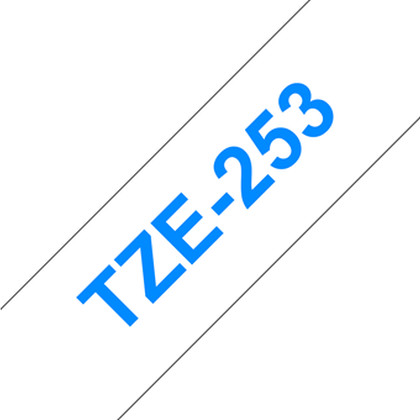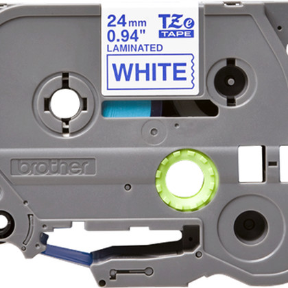 Fita laminada. Texto azul sobre fundo branco. Largura: 24 mm. Comprimento: 8 m - Brother TZe-253