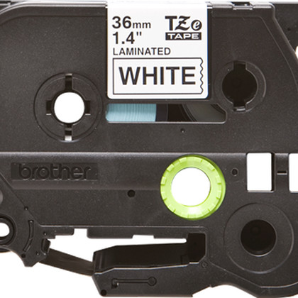 Fita laminada. Texto preto sobre fundo branco. Largura: 36 mm. Comprimento: 8 m - Brother TZe-261