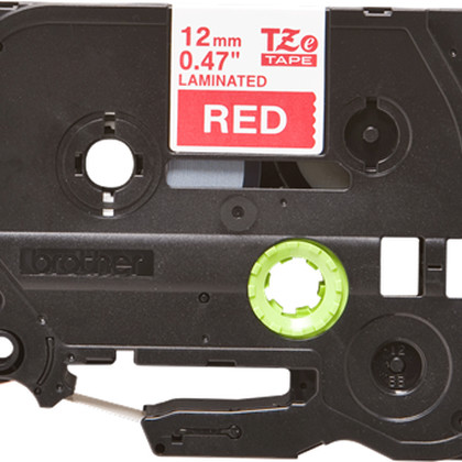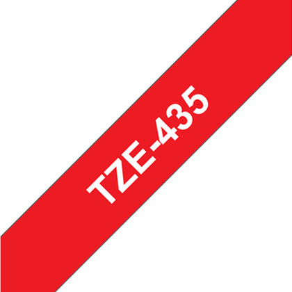 Fita laminada. Texto branco sobre fundo vermelho. Largura: 12 mm. Comprimento: 8 m - Brother TZe-435