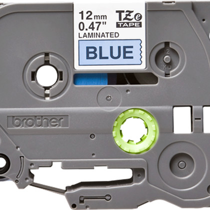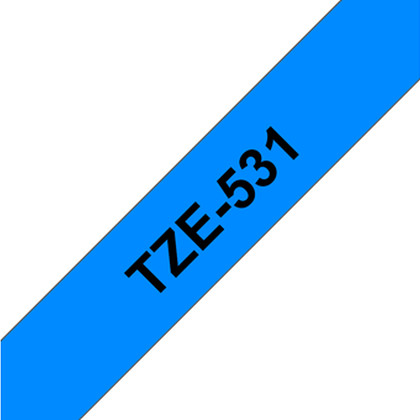 Fita laminada. Texto preto sobre fundo azul. Largura: 12 mm. Comprimento: 8 m - Brother TZe-531
