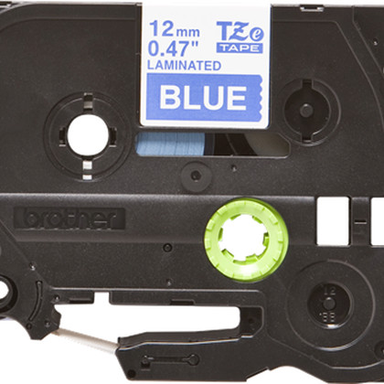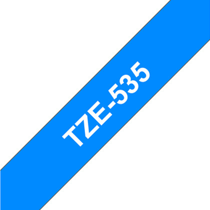 Fita laminada. Texto branco sobre fundo azul. Largura: 12 mm. Comprimento: 8 m - Brother TZe-535