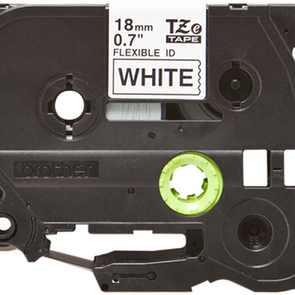 Fita laminada flexível. Texto preto sobre fundo branco. Largura: 18 mm. Comprimento: 8 m - Brother TZe-FX241