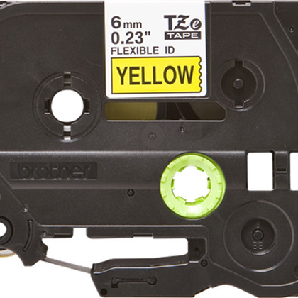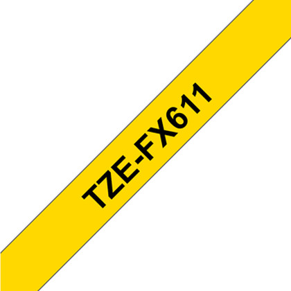 Fita laminada flexível. Texto preto sobre fundo amarelo. Largura: 6 mm. Comprimento: 8 m - Brother TZe-FX611