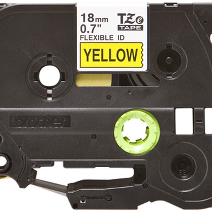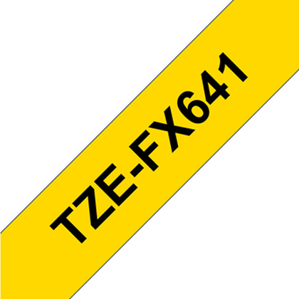 Fita laminada flexível. Texto preto sobre fundo amarelo. Largura: 18 mm. Comprimento: 8 m - Brother TZe-FX641