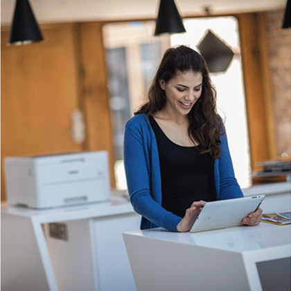 Partilhe o equipamento através da rede cablada e WiFi disponível e utilize a HL-L3230CW desde tablets e móveis com a conexão móvel e todas as suas opções disponíveis: Brother iPrint&Scan, AirPrint, Google Cloud Print, Android Print Service Plugin, Mopria e Wi-Fi Direct.