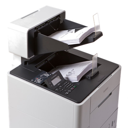 Esta impressora de grande formato é ideal para empresas com necessidades de impressão a preto e branco, entre 250 e 1000 páginas por dia. Permite a impressão em frente e verso e tem capacidade para 600 folhas de papel (extensível até 2100 folhas) com um consumo energético de apenas 1,5 kWh.