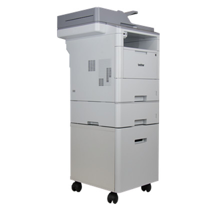 Dispõe de duas bandejas de papel de 520 folhas e pode ser adicionada mais uma (de 250 ou 520 folhas) para aumentar a sua capacidade de entrada de papel. Tem também uma bandeja multipropósito com capacidade para 50 folhas que permite trabalhar com diferentes formatos de papel, como envelopes ou papeis mais espessos. Dispõe de uma base com arrumação que permite guardar documentação ou papel de reposição, além de possibilitar a colocação do equipamento no chão.